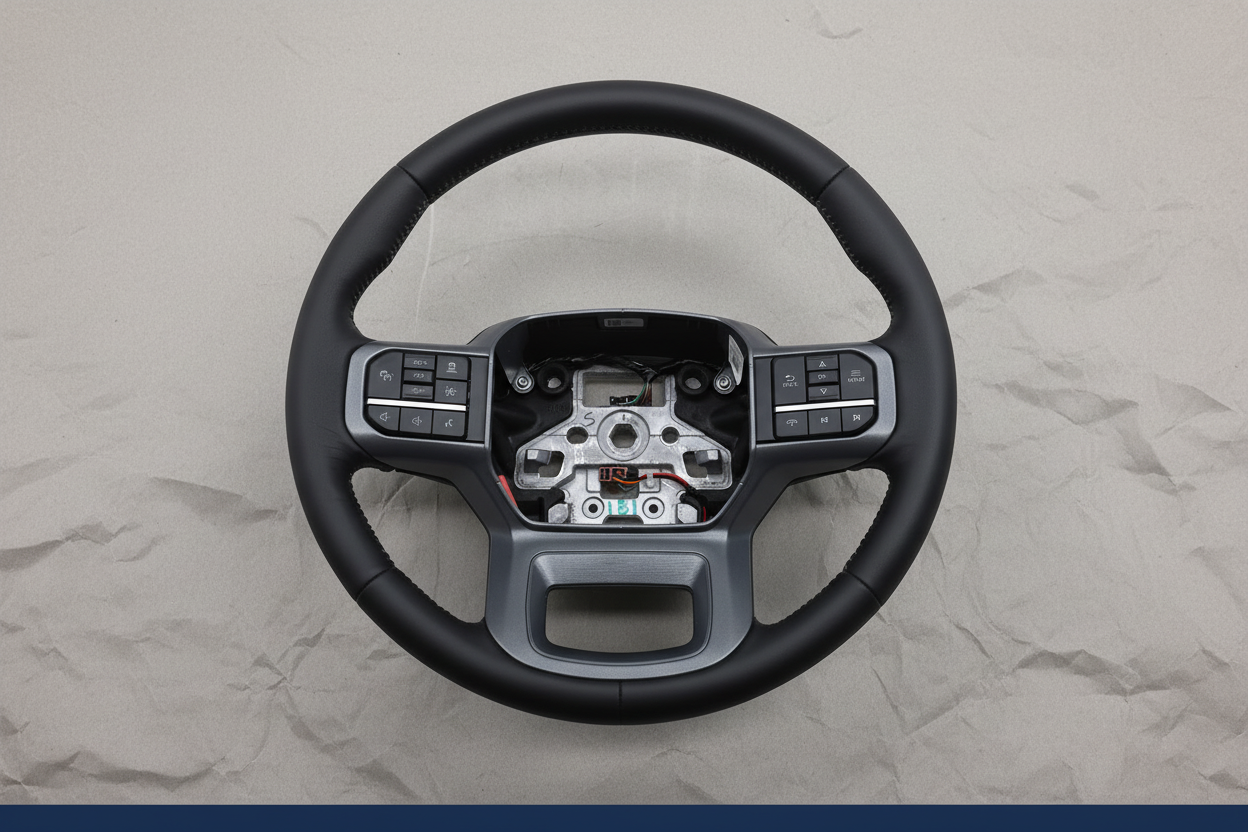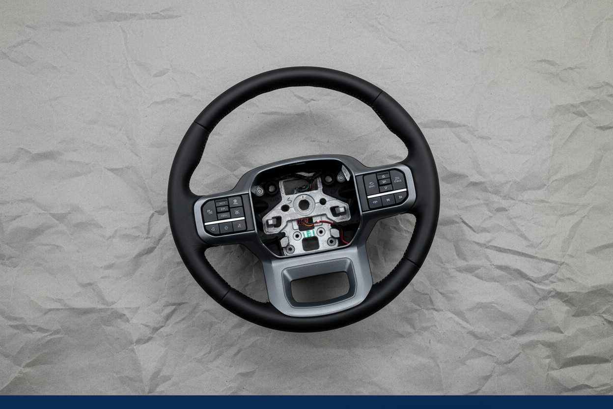 This is a Genuine OEM black leather heated steering wheel, the exact same part sold at your new car dealership. Designed specifically for 2023-2025 Ford F-250, F-350, F-450, and F-550 Super Duty Lariat models, this premium steering wheel features integrated heating, lane departure warning, and adaptive cruise control functionality for enhanced comfort and safety.