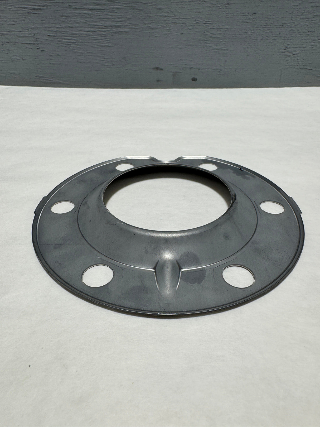 The rear brake drum dust grease deflector is essential for maintaining the performance and longevity of the brake system. A damaged or missing deflector can allow debris, dust, and grease to accumulate in the brake components, leading to decreased braking efficiency, excessive wear, and potential failure. Replacing a faulty or missing deflector with this OEM part restores the protective function, keeping the brake system clean and operating as it should.