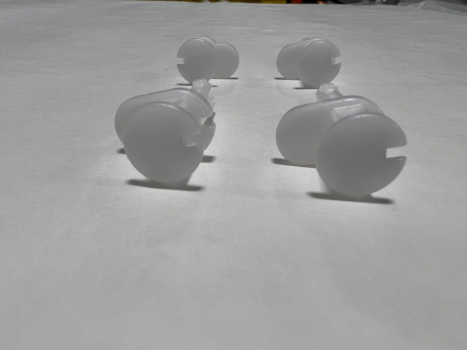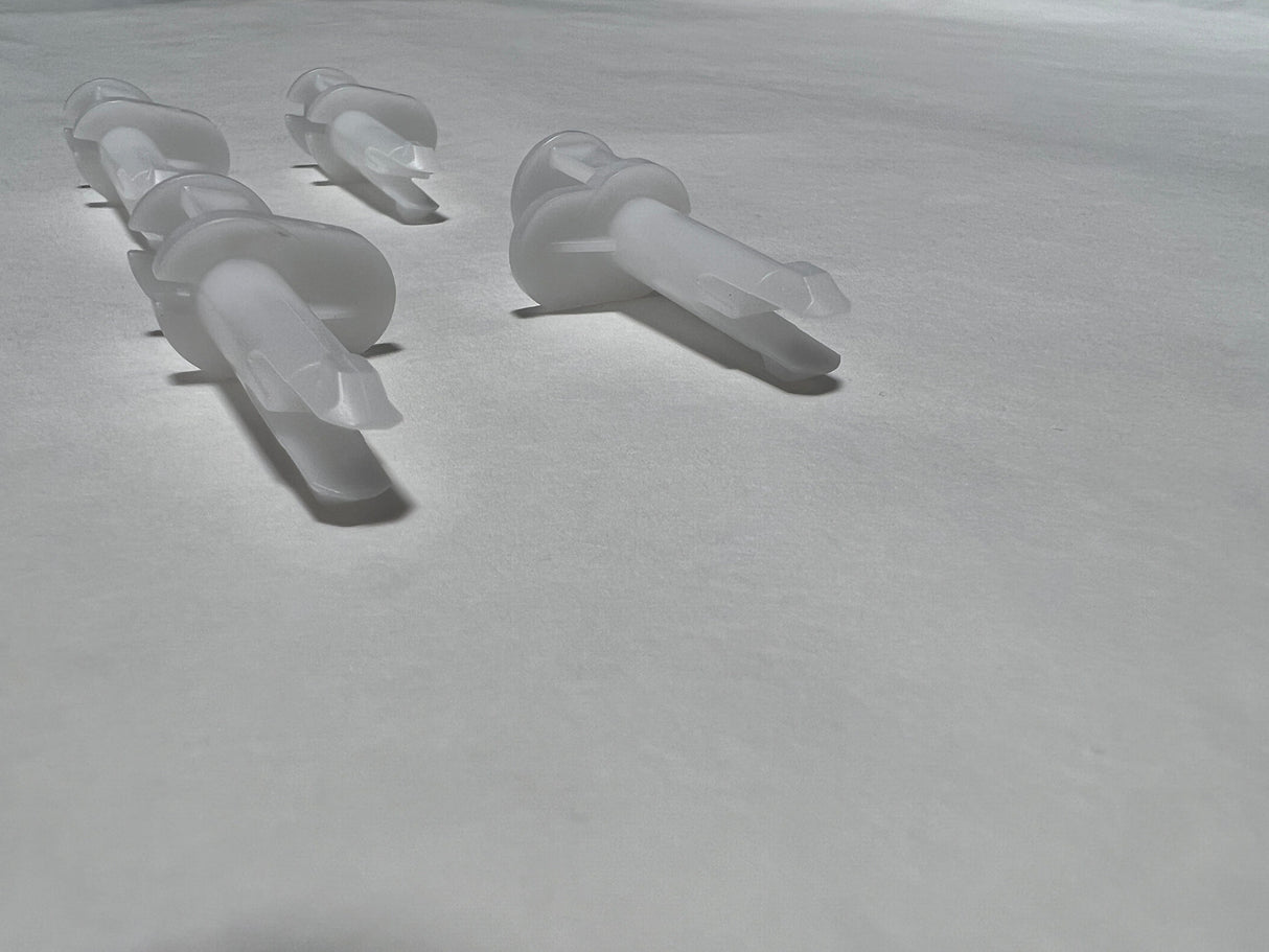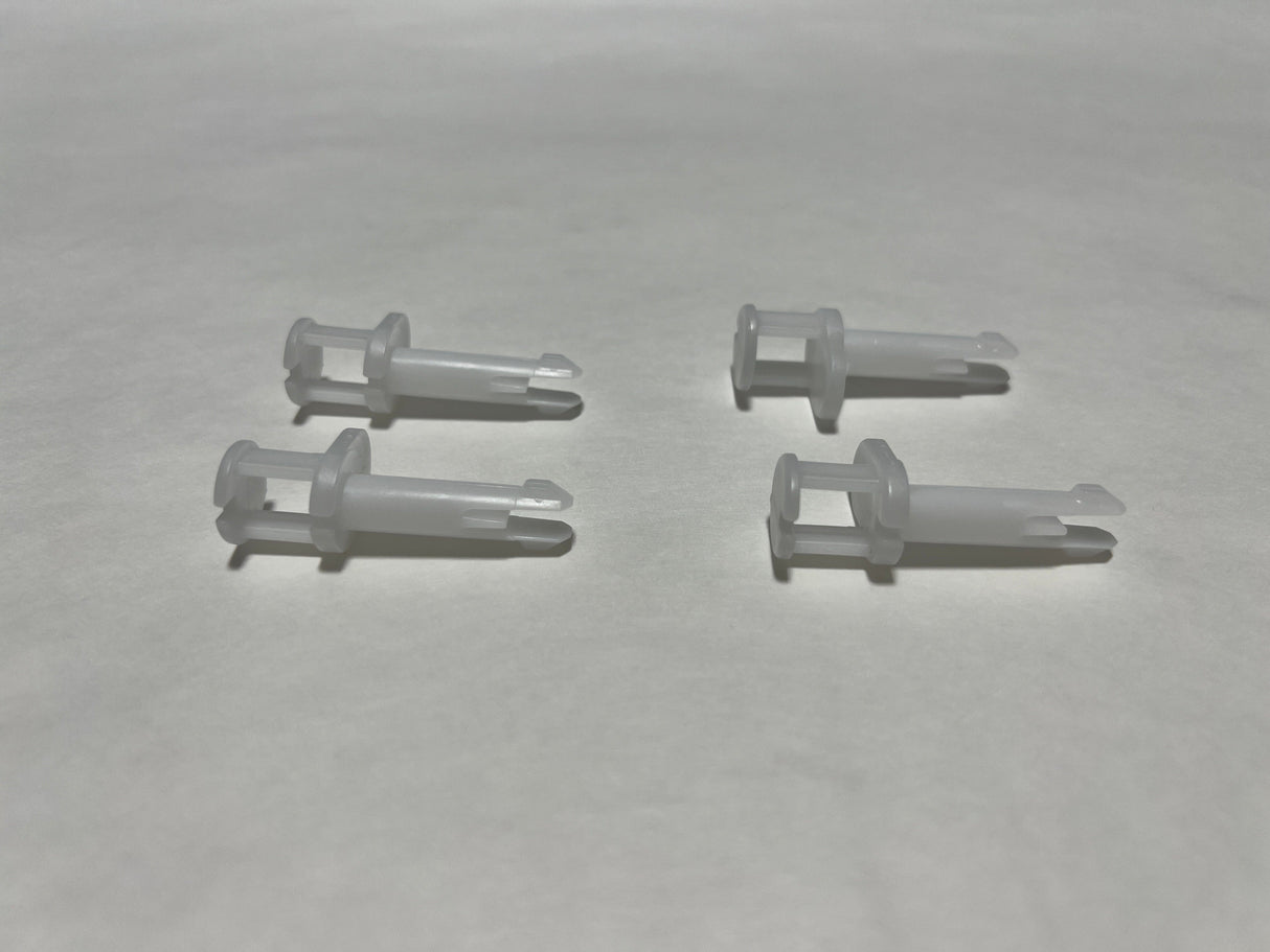 The 2013-2019 Ford Explorer Glove Compartment Box Check Strap Retainers and Pins set includes four pieces, providing the necessary components to maintain the function and form of the glove box opening mechanism. These retainers and pins are crucial for the controlled movement and secure positioning of the glove box, ensuring it operates smoothly without sagging or misalignment.