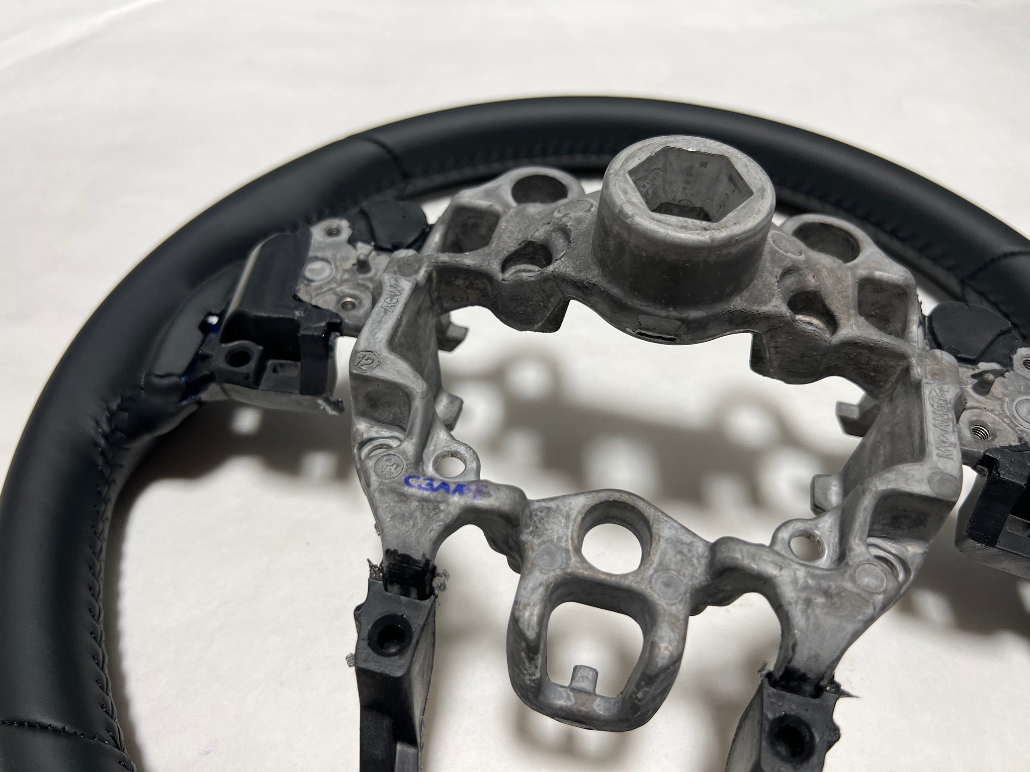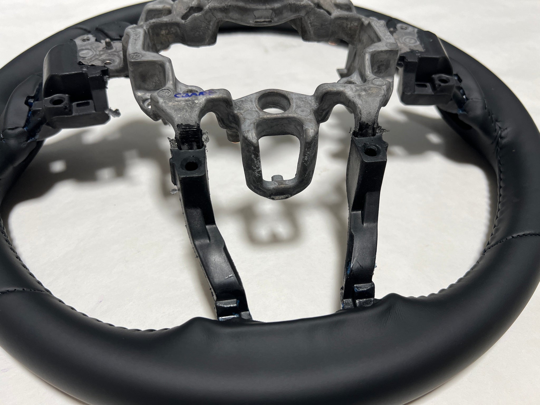 The Genuine OEM Steering Wheel Leather for the 2017-2019 Mazda CX-5 and 2017-2018 Mazda 3 is an essential component designed to enhance the driving experience by providing a comfortable and stylish grip. This high-quality leather steering wheel is specifically crafted for models without the heated steering wheel feature, ensuring a perfect fit and a premium feel. If your existing steering wheel is worn, damaged, or showing signs of wear, replacing it with this OEM part guarantees a precise fit and restores the original aesthetic and functionality of your vehicle.