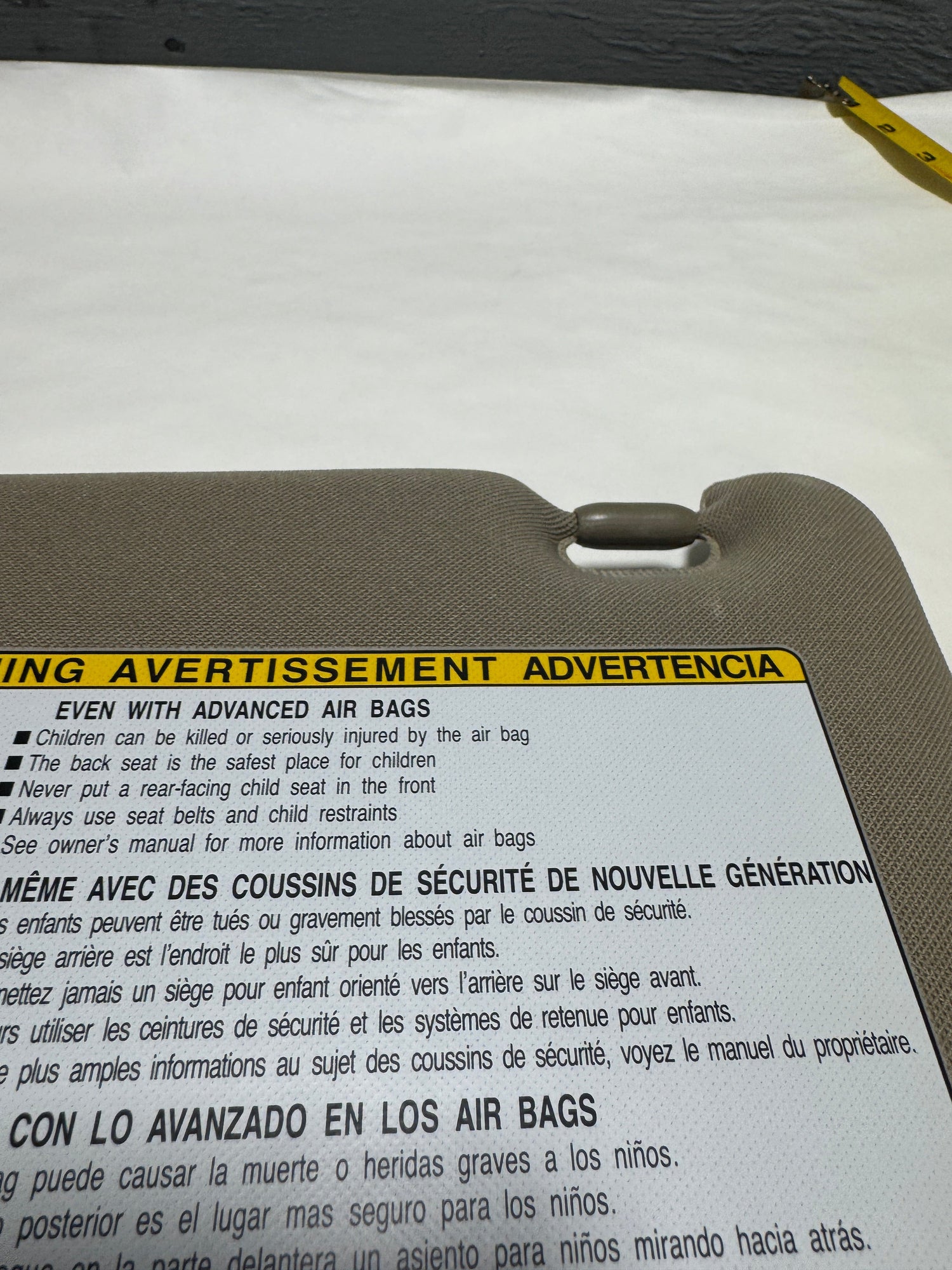 - Direct replacement for the original driver side sun visor.